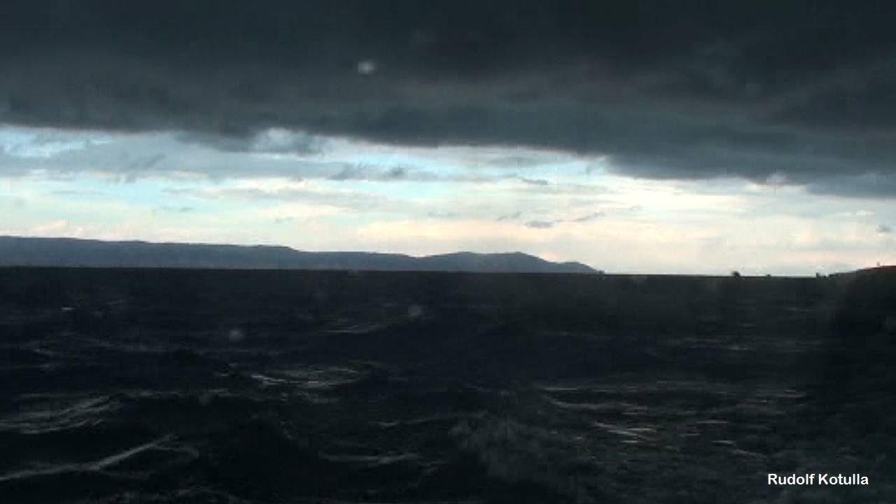 stark bei dem Wellengang. Eine dunkle Wolkenfront schob sich über den